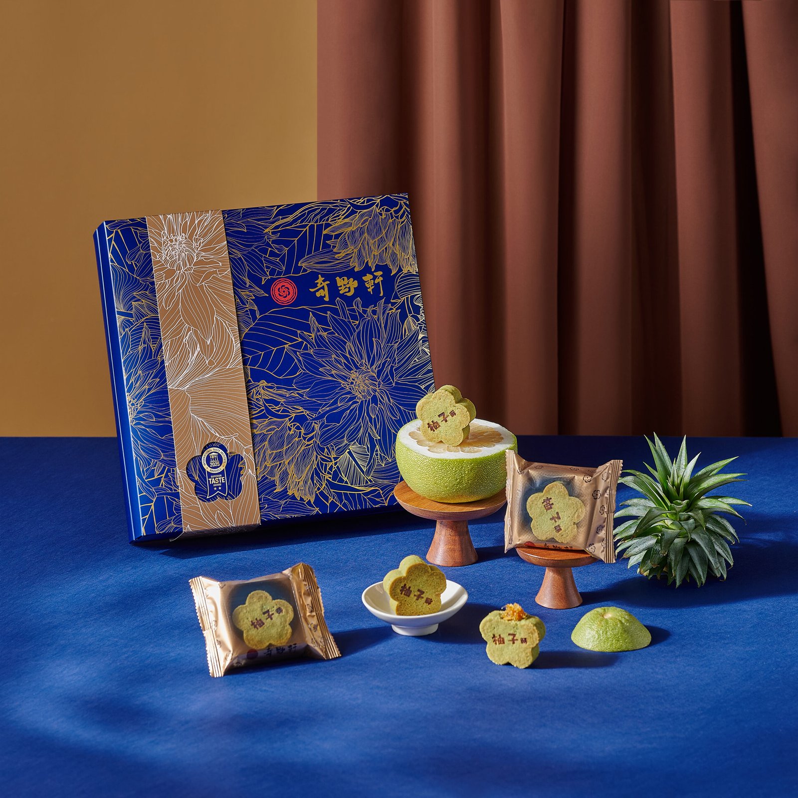 《蛋奶素》柚子鳳梨餡、麵粉、奶油、煉乳、奶粉、起司粉、雞蛋、糖、槴子花色粉