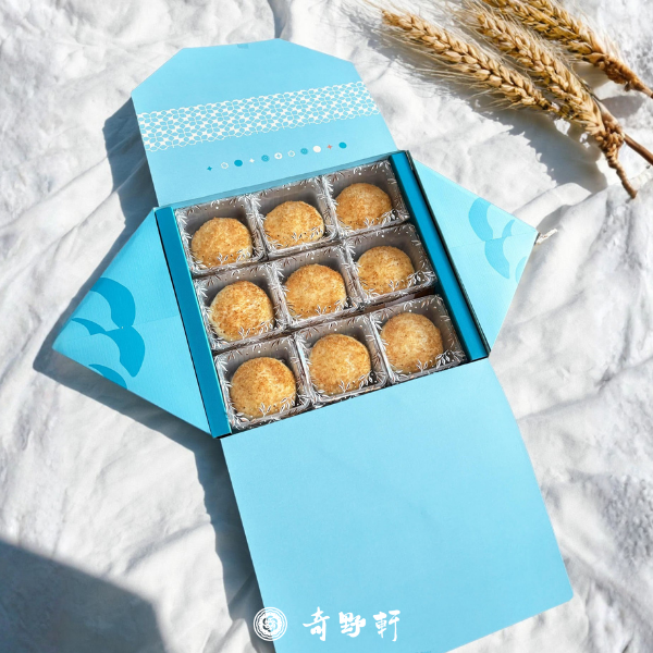 • 多層酥皮以手工摺疊細烤,外層金黃酥脆、內餡柔潤香滑。